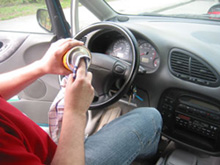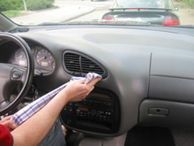 Reinigen Sie nun mit Hilfe des mit dem benzingetränkten Baumwolllappen das Amaturenbrett, um dieses von Staub, Schmutz oder Cockpitspry-Resten zu befreien. Wiederholen Sie ggf. diesen Vorgang und lassen Sie die Oberfläche trocknen. |