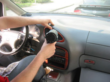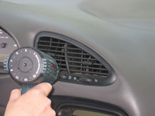 Nach dem Reinigen wird nun die zu beklebende Oberfläche des Amaturenbrettes mit Hilfe eines Föns (ca. 0-50 Grad Celsiuis) erwärmt, um eine optimale Selbstklebehaftung zu gewährleisten.