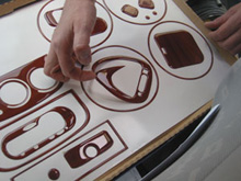 Bevor Sie das gewünschte Amaturendekor anbringen können, benötigen Sie ein Spezialbenzin 30/75 (Gasolin) und ein Baumwolltuch. Bitte achten Sie auf ausreichende Belüftung beim Umgang mit dem Benzin! |